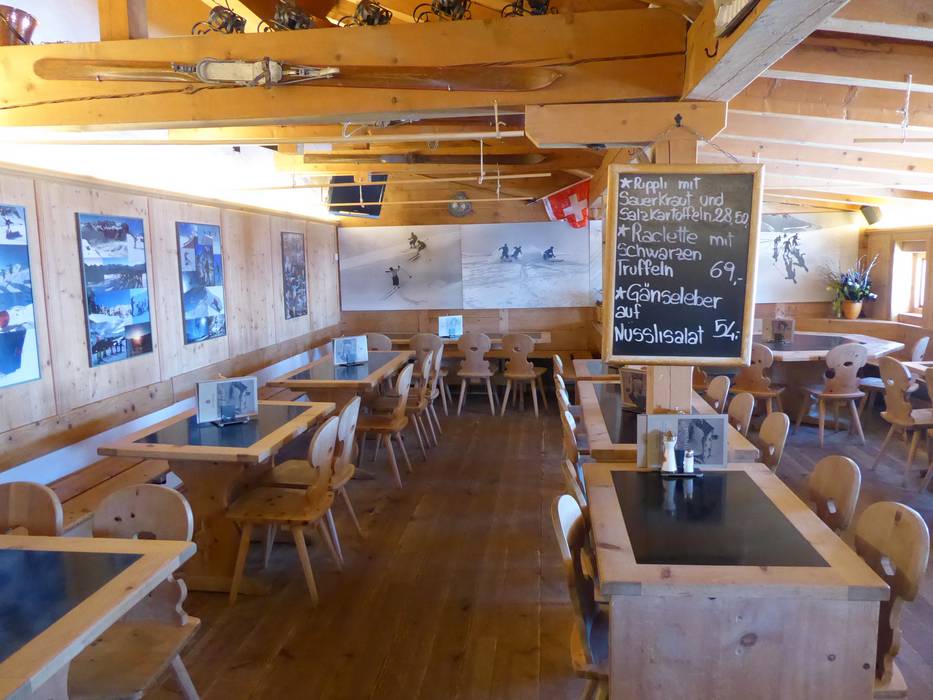 Die urige Berghütte Glünetta bietet eine schöne Sonnenterrasse und Apéro-Bar. Es gibt Rösti in allen Variationen, Raclette und Käsefondue.