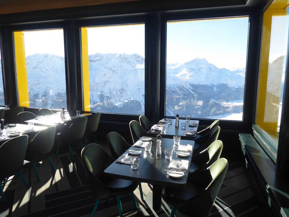 Der Kulinarik-Hotspot bietet eine exklusive Bar und eine stilvolle Küche. Hier werden genussvolle Speisen und edle Weine serviert. Der atemberaubende Blick auf die Engadiner Berge begleitet das hervorragende Essen. Im gleichen Gebäude, eine Etage höher, befindet sich auch das Edy's Free-Flow-Selbstbedienungsrestaurant.