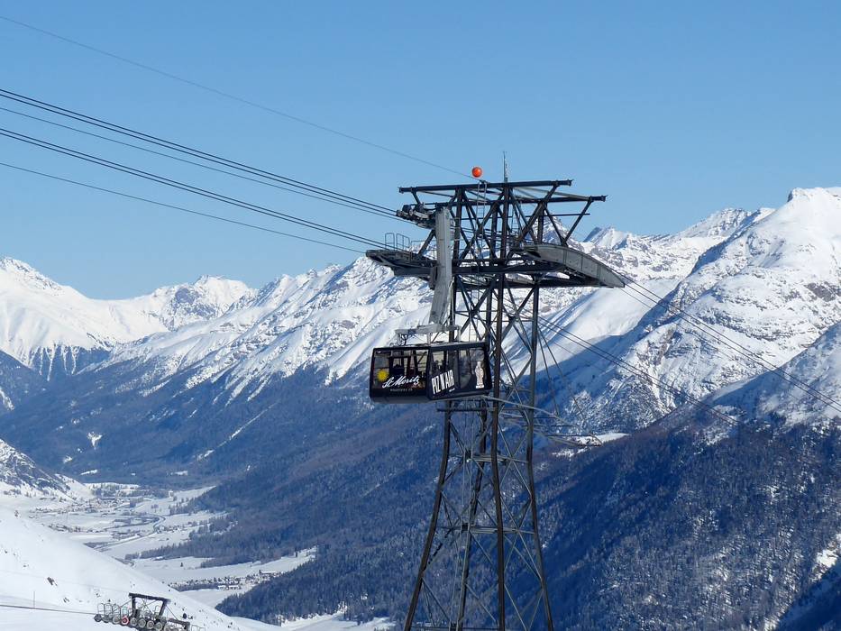 Pendelbahn/Luftseilbahn im Skigebiet St. Moritz – Corviglia