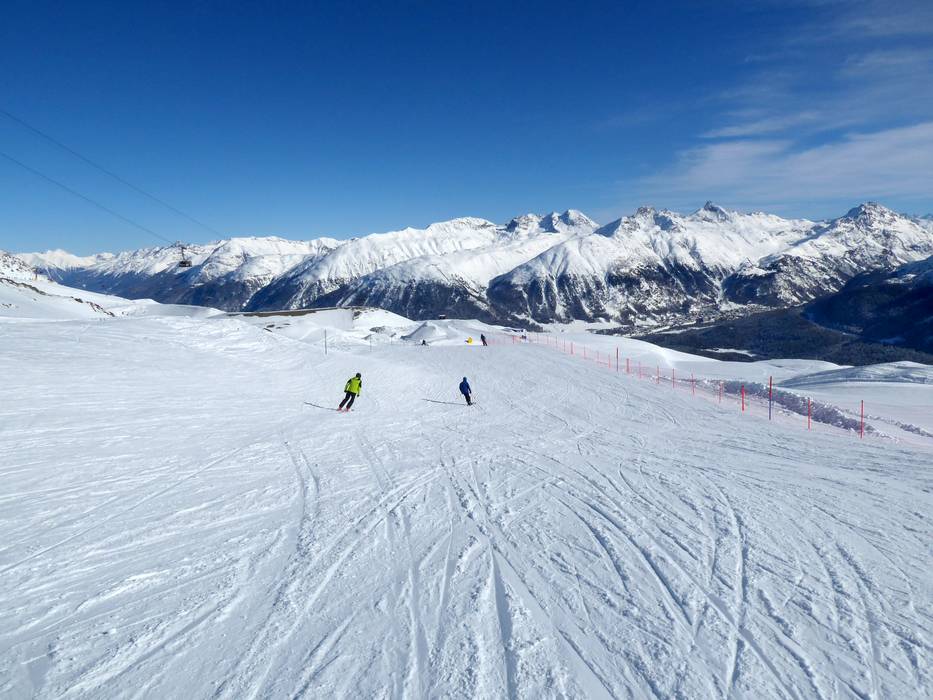 Am Hausberg von St. Moritz gibt es Abfahrten aller Schwierigkeitsgrade. Vom hochalpinen Gelände kann man über sehr breite Pisten oberhalb der Baumgrenze bis unterhalb der Baumgrenze wedeln. Die Pisten sind sehr breit und ideal zum Carven. Tiefschneefans kommen im Freerider-Gebiet Zöllner auf ihre Kosten.