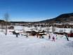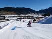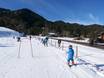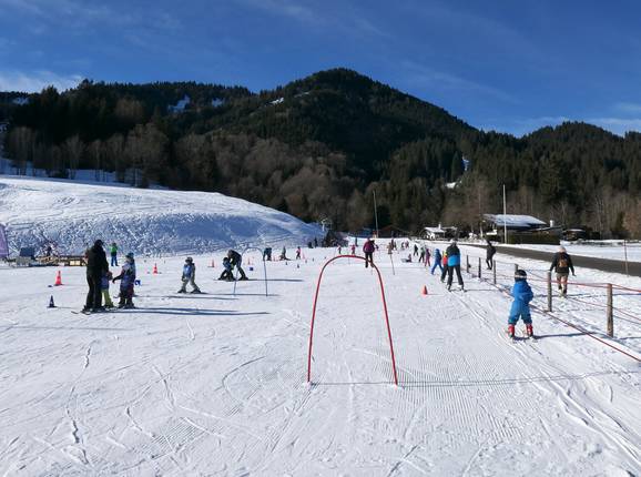 Direkt an der Talstation erstreckt sich das großzügige, zusammenhängende Anfängergebiet. Den Einstieg erleichtern zwei Seillifte, an denen man sich mit der Hand festhält und den leichten Hang hinaufziehen lässt. Danach können Kinder an drei Tellerliften mit langsam ansteigendem Schwierigkeitsgrad die eigenen Fähigkeiten Schritt für Schritt weiterentwickeln.