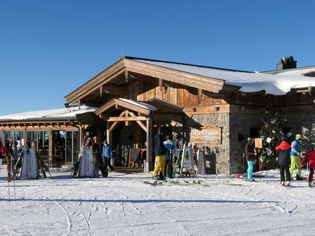 Im gesamten Skigebiet sind Einkehrmöglichkeiten vorhanden. Diese reichen von gemütlichen Hütten bis hin zu Selbstbedienungs-Restaurants. Die Qualität der Speisen ist gut und man verwendet zumeist regionale Zutaten.