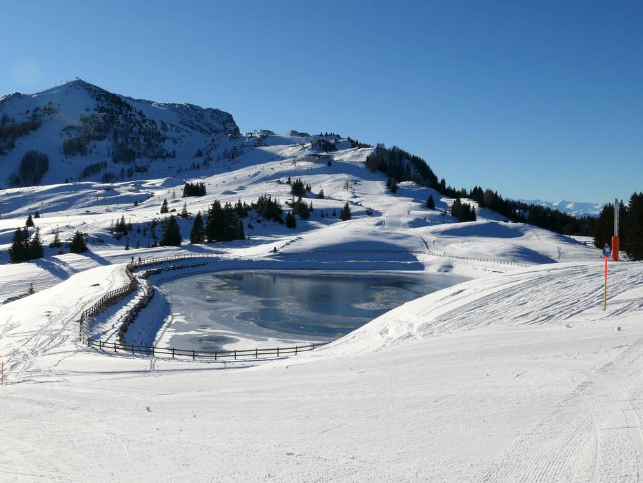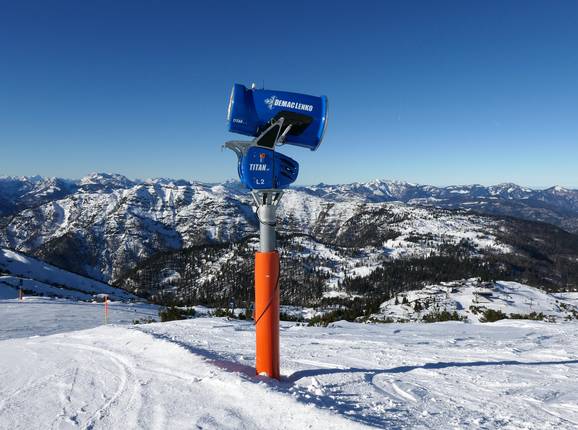 Die Pisten auf der österreichischen Seite können zu 100% beschneit werden. Der Speicherteich am Gipfel der Steinplatte hat das Skigebiet noch schneesicherer gemacht. Auf der recht schneesicheren Winklmoosalm in Deutschland gibt es keine Schneekanonen. Die Winklmoosalm und die Steinplatte sind für den reichlichen Naturschnee bekannt.