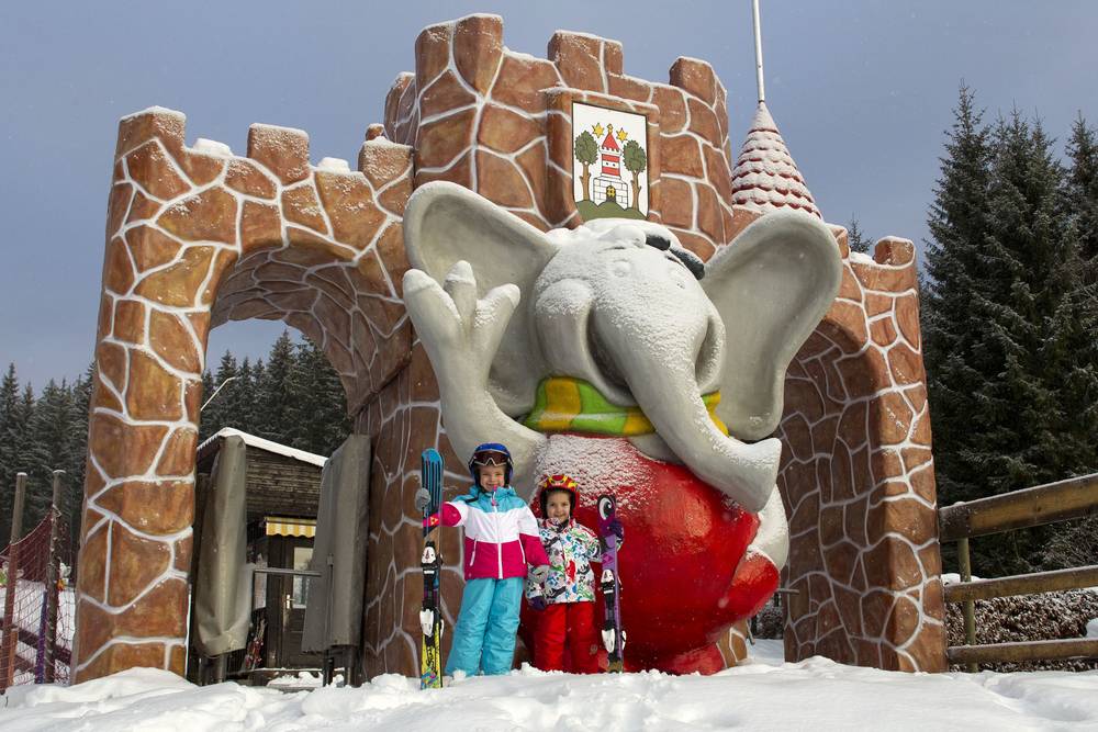 Das neu gestaltete "KEINE SORGEN WINTERLAND ELEFUNTASIA" als echte Attraktion für unsere Kleinen. Neben Märchenschloss und Elefanten, lernen die Kinder spielerisch die ersten Schritte auf den Skiern.