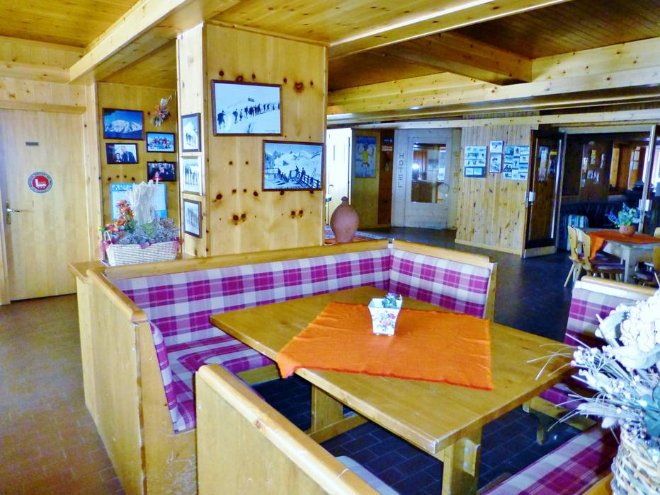 Vom Restaurant hat man einen guten Blick auf die umliegende Gletscherwelt und die markante Geisterspitze. Es werden regionale und italienische Gerichte serviert.