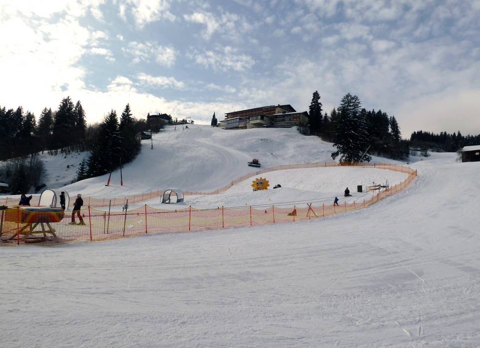 Im Kinderland des Zimi Club in Fischen im Allgäu findet man ein Förderband, Seillift und lustige Hindernisse. Die Skilehrer der Skischule Hingrisa betreuen das komplette Areal.