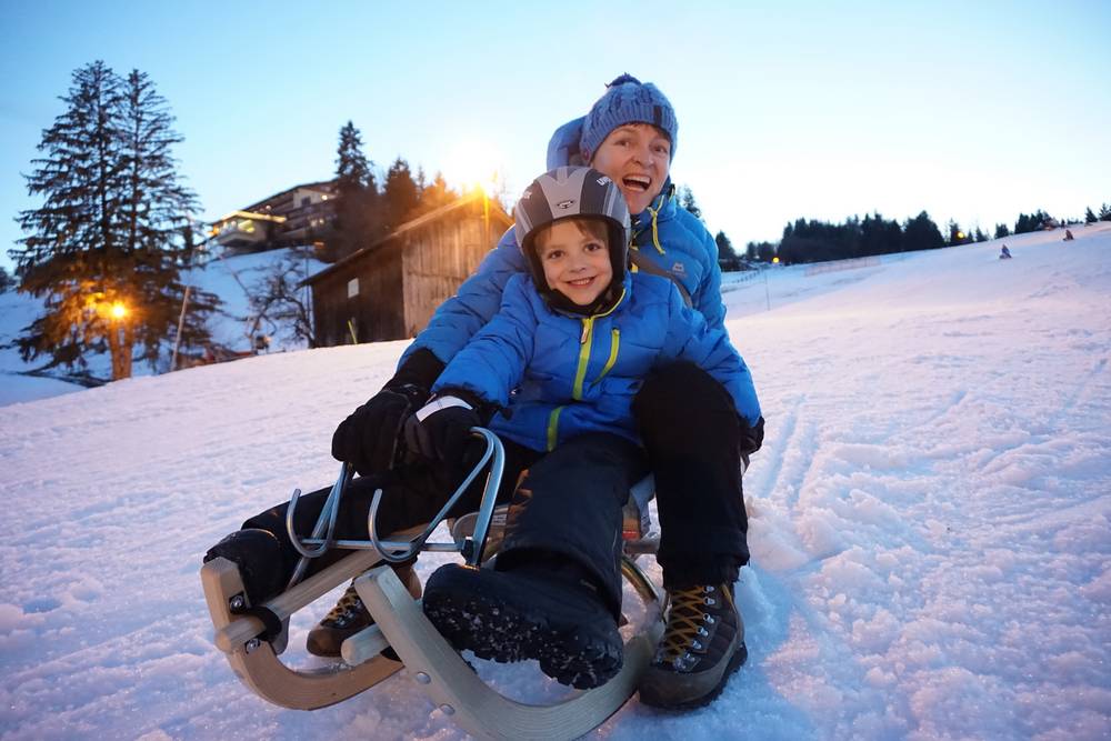 Abendrodeln und Abendskifahren