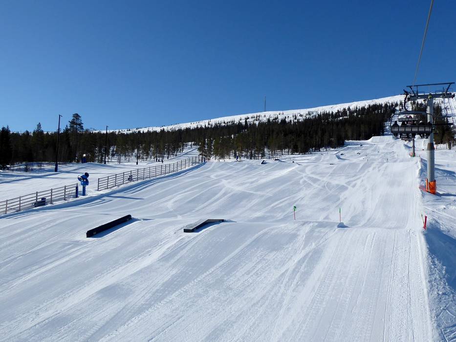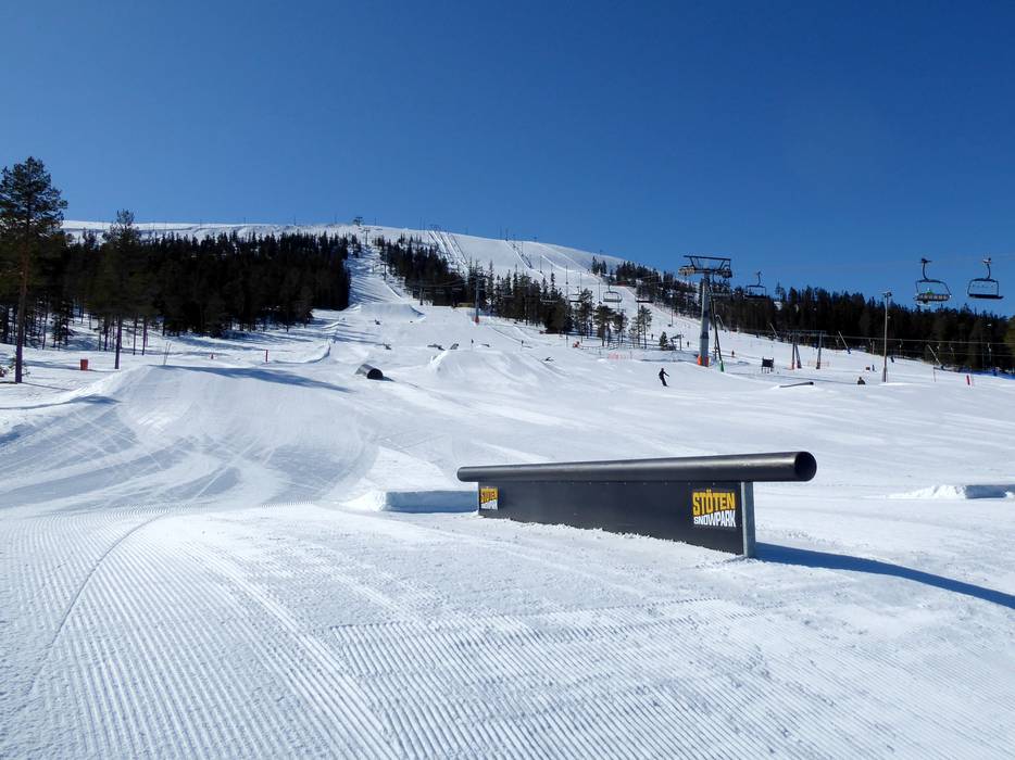 Das Skigebiet Stöten bietet einen schönen Snowpark und einen Ski-Cross.