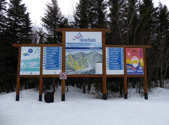 Das Skigebiet Stoneham bietet an den Talstationen detaillierte Informationen zu den geöffneten Pisten und Liften. Zudem sind an allen wichtigen Punkten große Pistenpläne angebracht. Jede Abfahrt ist mit Namen ausgeschildert. Man findet sich somit immer sehr gut zurecht.
