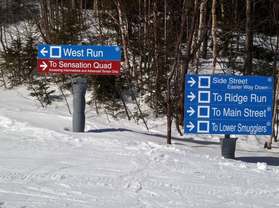 Orientierung (Pistenplan, Informationstafeln, Ausschilderung) und Sicherheit im Skigebiet Stowe
