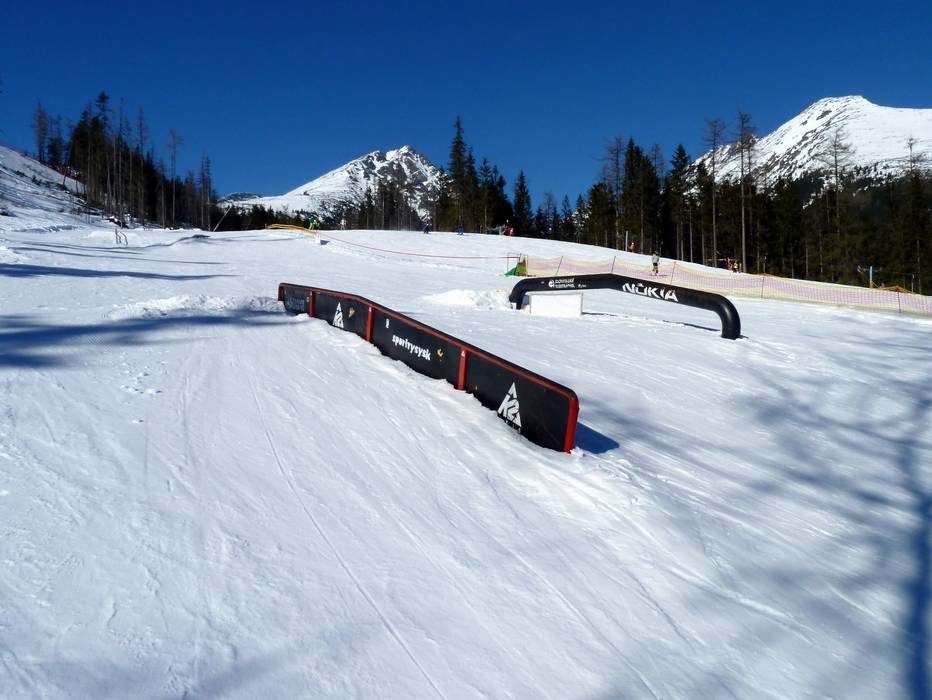 Der K2 Snowpark Štrbské Pleso befindet sich etwas oberhalb der Talstation und bietet Kicker, Rails und Boxen.