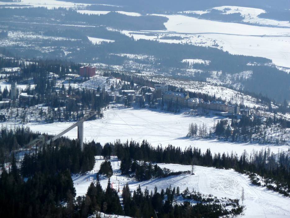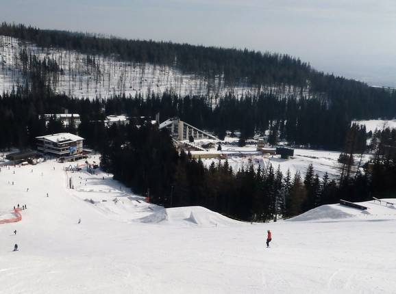 Das Hotel FIS befindet sich direkt an den Pisten. Weitere Hotels, darunter das Grand Hotel Kempinski High Tatras, befinden sich im knapp einen Kilometer entfernten Štrbské Pleso.