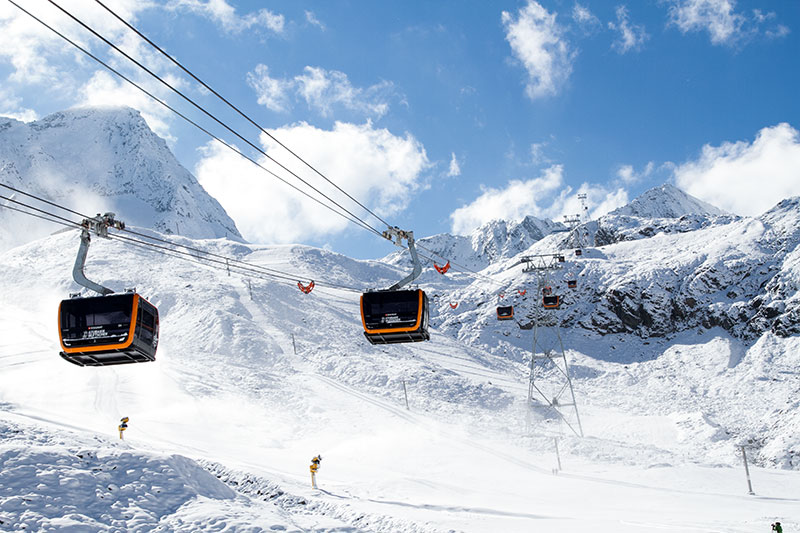 Neu! 3S Eisgratbahn Komfort und Design in 48 Kabinen. In 12 Minuten auf 2.900 m zur Bergstation Eisgrat.
