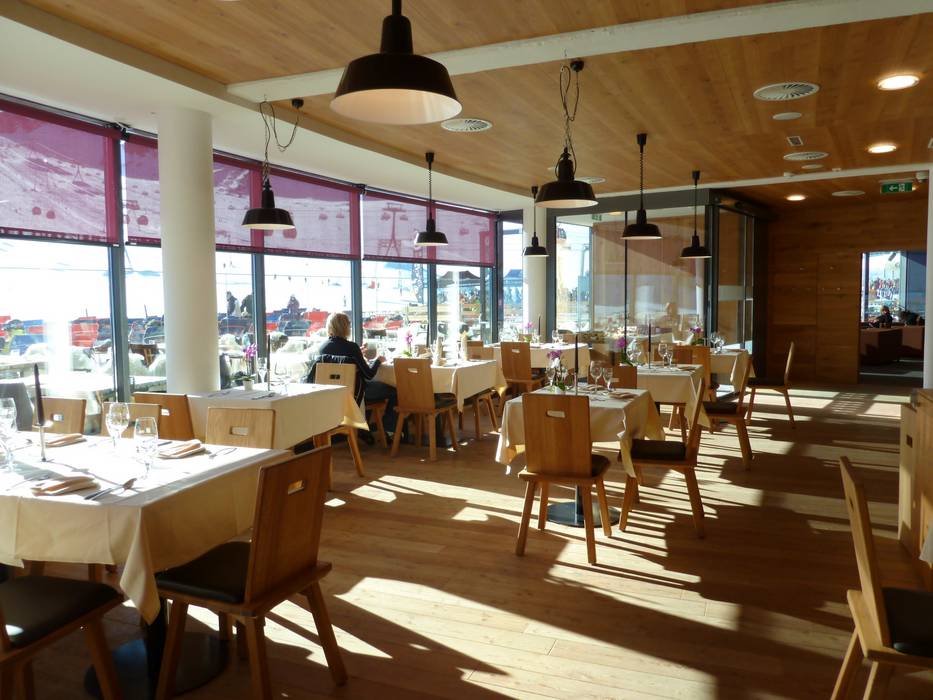 Erleben Sie kulinarische Gipfel-Genüsse im neuen Bedienungsrestaurant Schaufelspitz. Stilvoll gedeckte Tische mit herrlichem Blick auf die Stubaier Gletscherwelt laden zum Genießen ein.