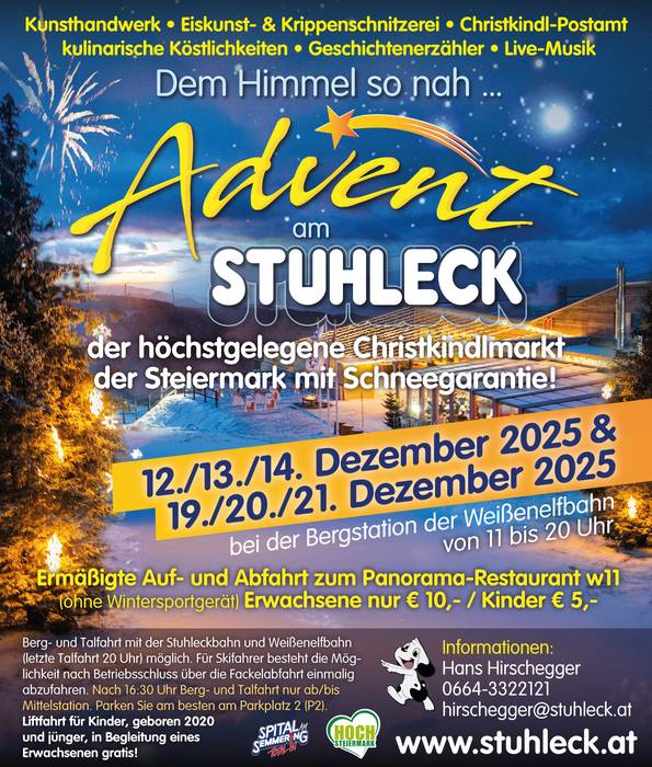 Der höchstgelegene Christkindlmarkt der Steiermark mit Schneegarantie!