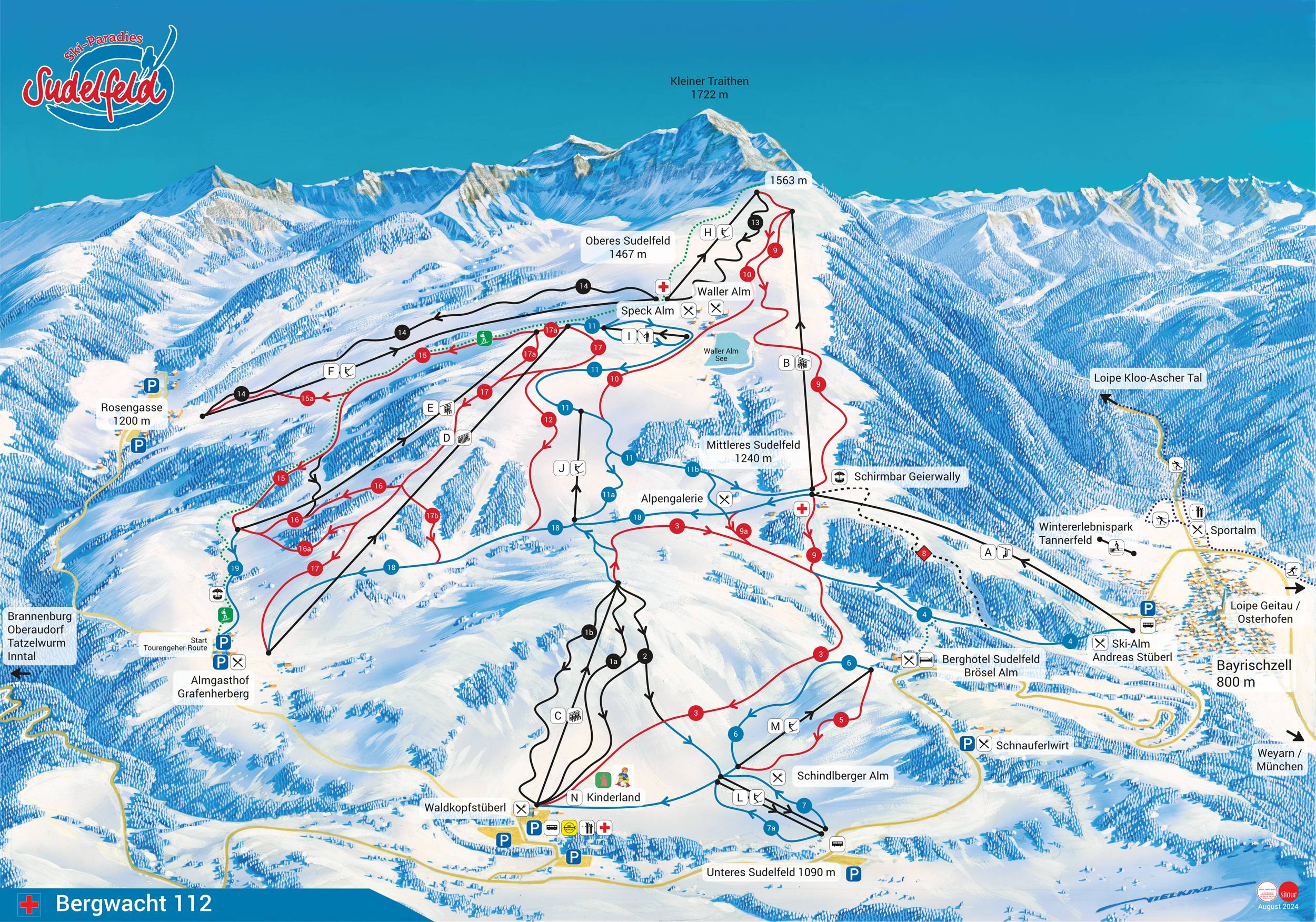 Orientierung (Pistenplan, Informationstafeln, Ausschilderung) und Sicherheit im Skigebiet Sudelfeld – Bayrischzell