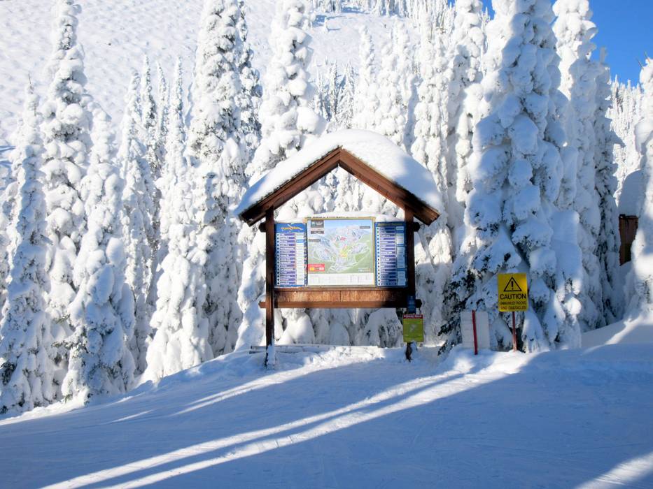 Orientierung (Pistenplan, Informationstafeln, Ausschilderung) und Sicherheit im Skigebiet Sun Peaks