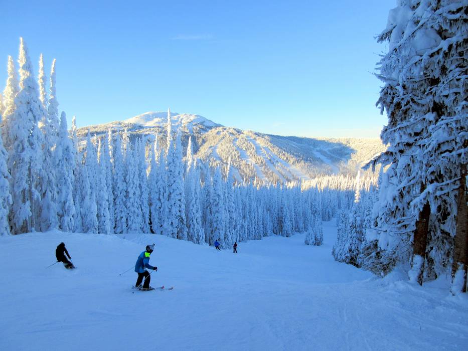 Das Skigebiet Sun Peaks bietet Abfahrten aller Schwierigkeitsgrade. Anfänger kommen auf den vielen leichten und langen Pisten voll auf ihre Kosten. Die Könnerherzen schlagen bei den schweren Pisten und Waldabfahrten höher. Die meisten Pisten führen durch Waldschneisen zu Tale. Am Mt. Tod und in der Crystal Bowl schwingt man über nahezu baumfreie Hänge.
