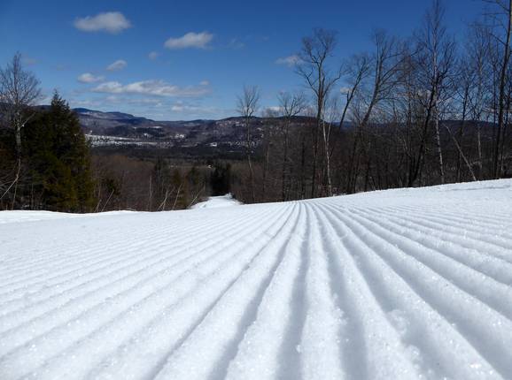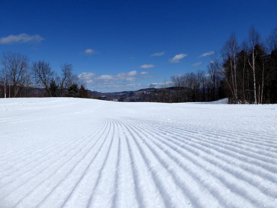 Man präpariert die Pisten im Skigebiet Sunday River mit viel Liebe zum Detail. Lediglich die ausgeholzten Waldschneisenabfahrten (Gladed Runs) und Buckelpisten werden nicht präpariert.