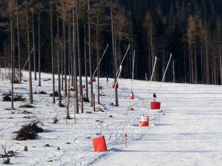 Von Skalnaté Pleso bis ins Tal sind alle Pisten beschneit. Nur der oberste Teil ist nicht beschneit. Normalerweise ist Schneemangel in der Hohen Tatra ein Fremdwort.