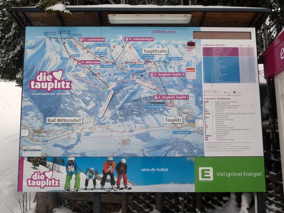 Orientierung (Pistenplan, Informationstafeln, Ausschilderung) und Sicherheit im Skigebiet Tauplitz – Bad Mitterndorf