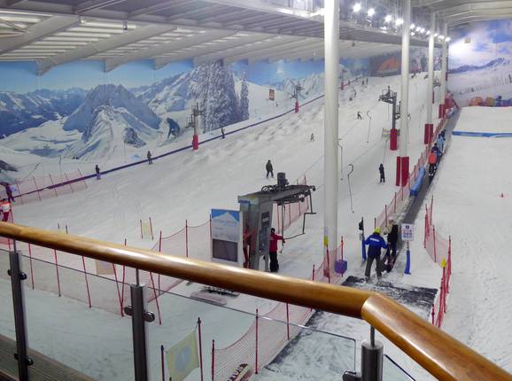 Blick vom Balkon in die Skihalle The Snow Centre 1/36