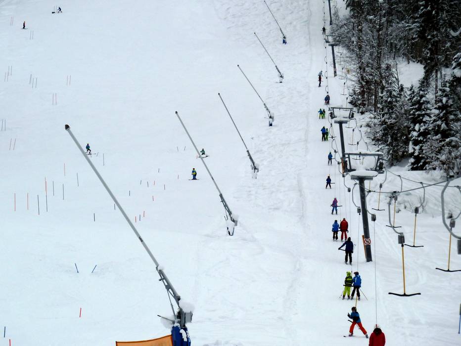 Das komplette Skigebiet Tirolina wird mit Lanzen beschneit. Aufgrund des Nordhangs ist das Skigebiet relativ schneesicher.