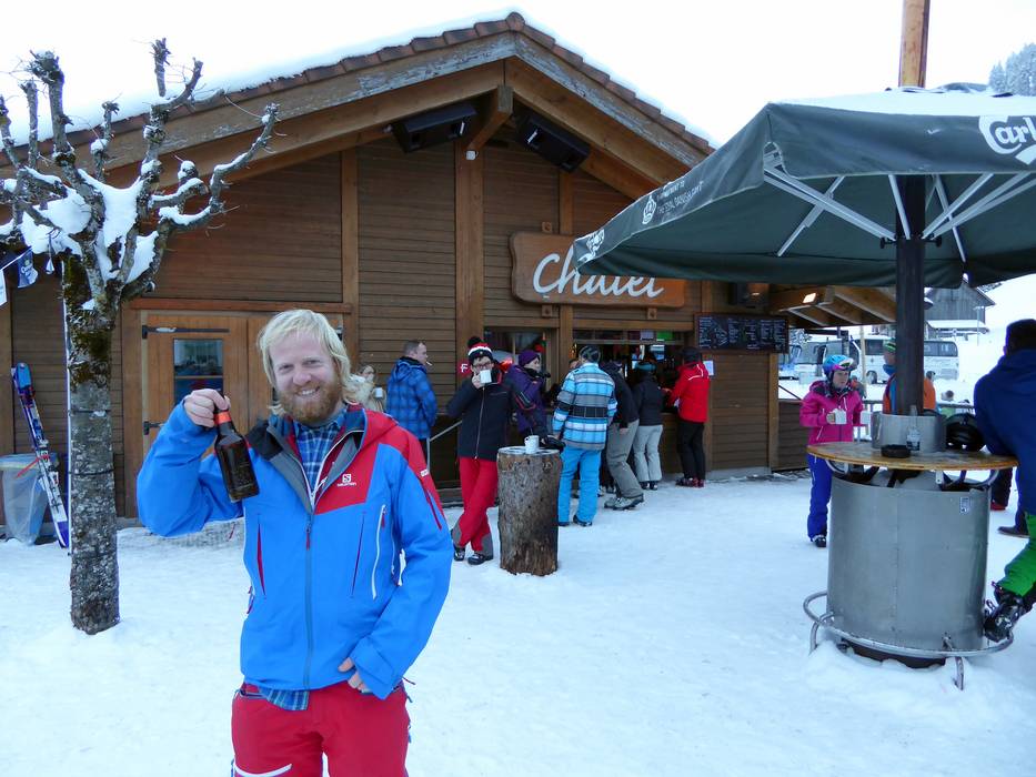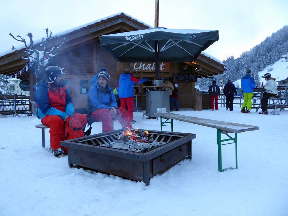 Am Ende eines gelungenen Skitages kann man im Tal zum Après-Ski übergehen. Das Chalet bietet gute Musik und gute Stimmung. Am knisternden Feuer kann man sich aufwärmen.