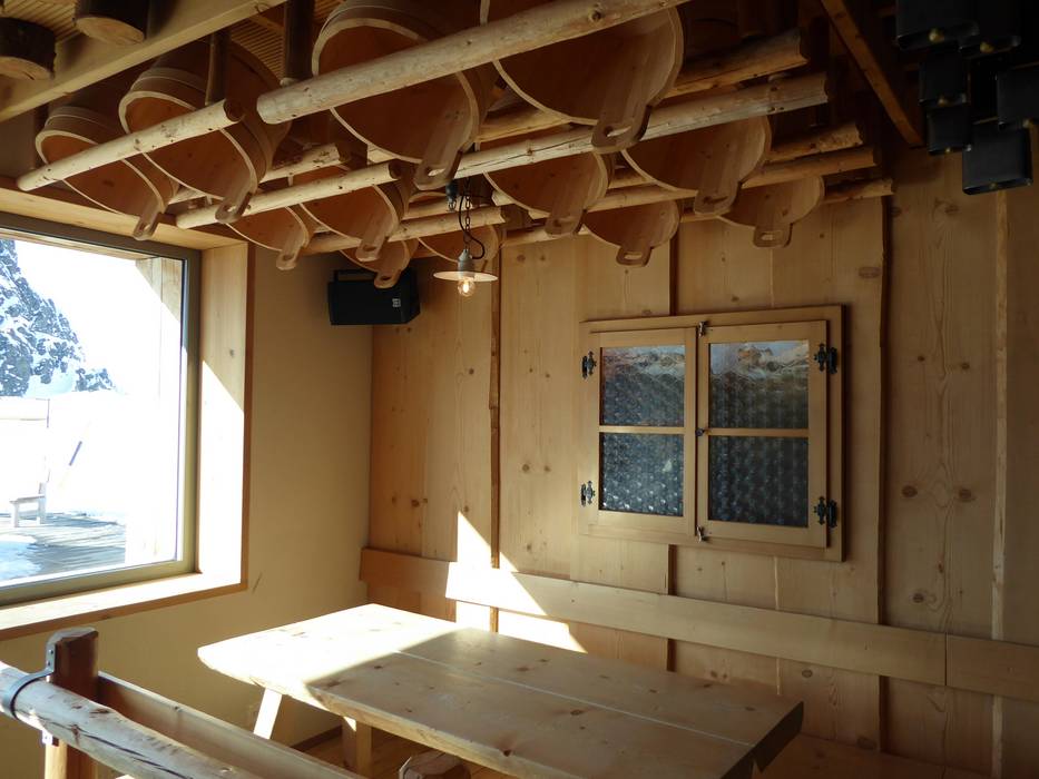 Das Bärghuis Jochpass bietet gemütliche und urige Stuben mit Bedienung. Neben einer großen Sonnenterrasse gibt es auch noch das Gadä mit Snacks und Getränken.
