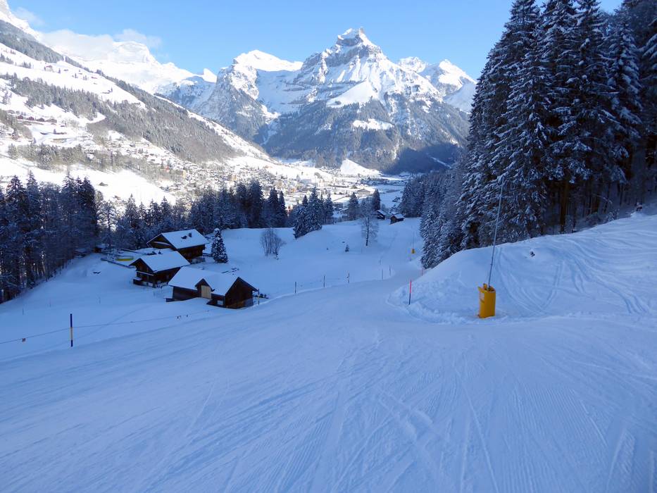 Eine beschneite Talabfahrt führt bis zur Talstation in Engelberg.