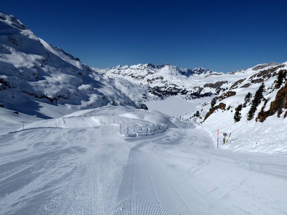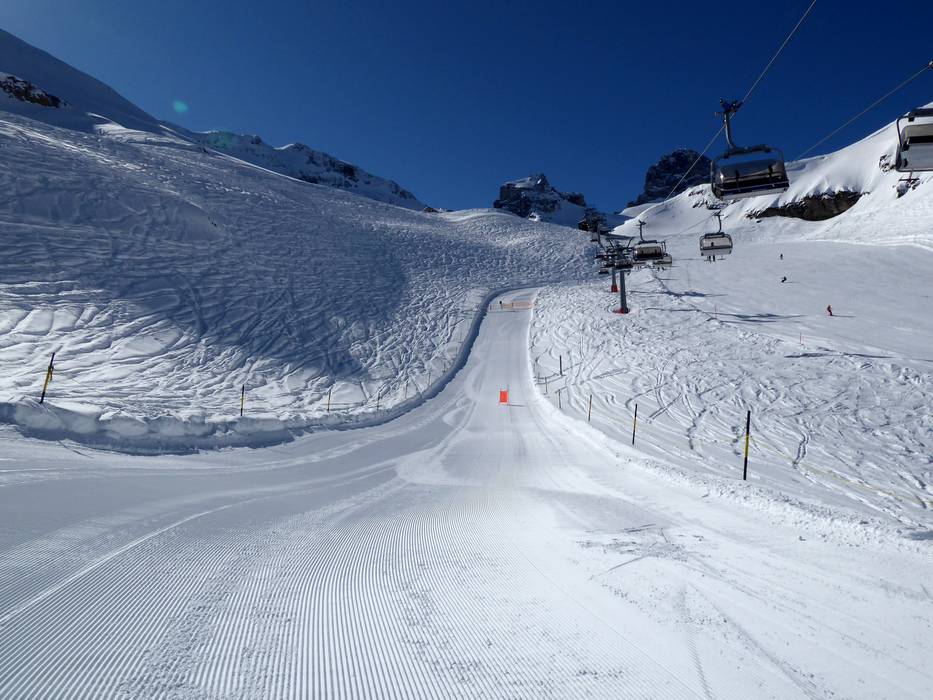 Die Abfahrt führt vom Titlis über den Trübsee bis nach Engelberg. Über den Trübsee muss man entweder die Vierersesselbahn Trübsee-Hopper nehmen oder ein gutes Stück schieben.