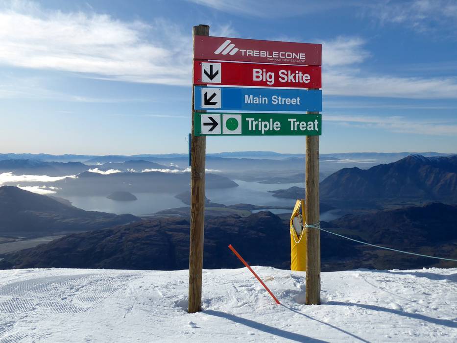 Orientierung (Pistenplan, Informationstafeln, Ausschilderung) und Sicherheit im Skigebiet Treble Cone