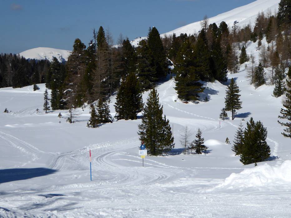 Anspruchsvolle Loipe durch ruhige, romantische Zirbenwald-Landschaft.