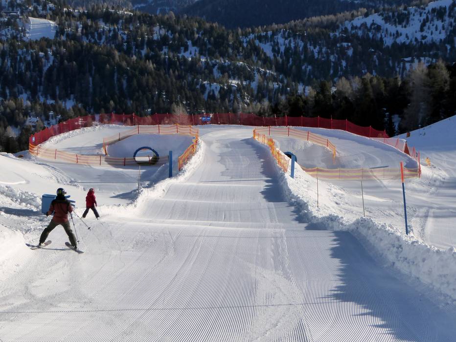 Die Kidsslope ist speziell für kleinere Kinder. Mit tierischen Begleitern geht es durch einen Schneetunnel, Steilkurven und Wellen.