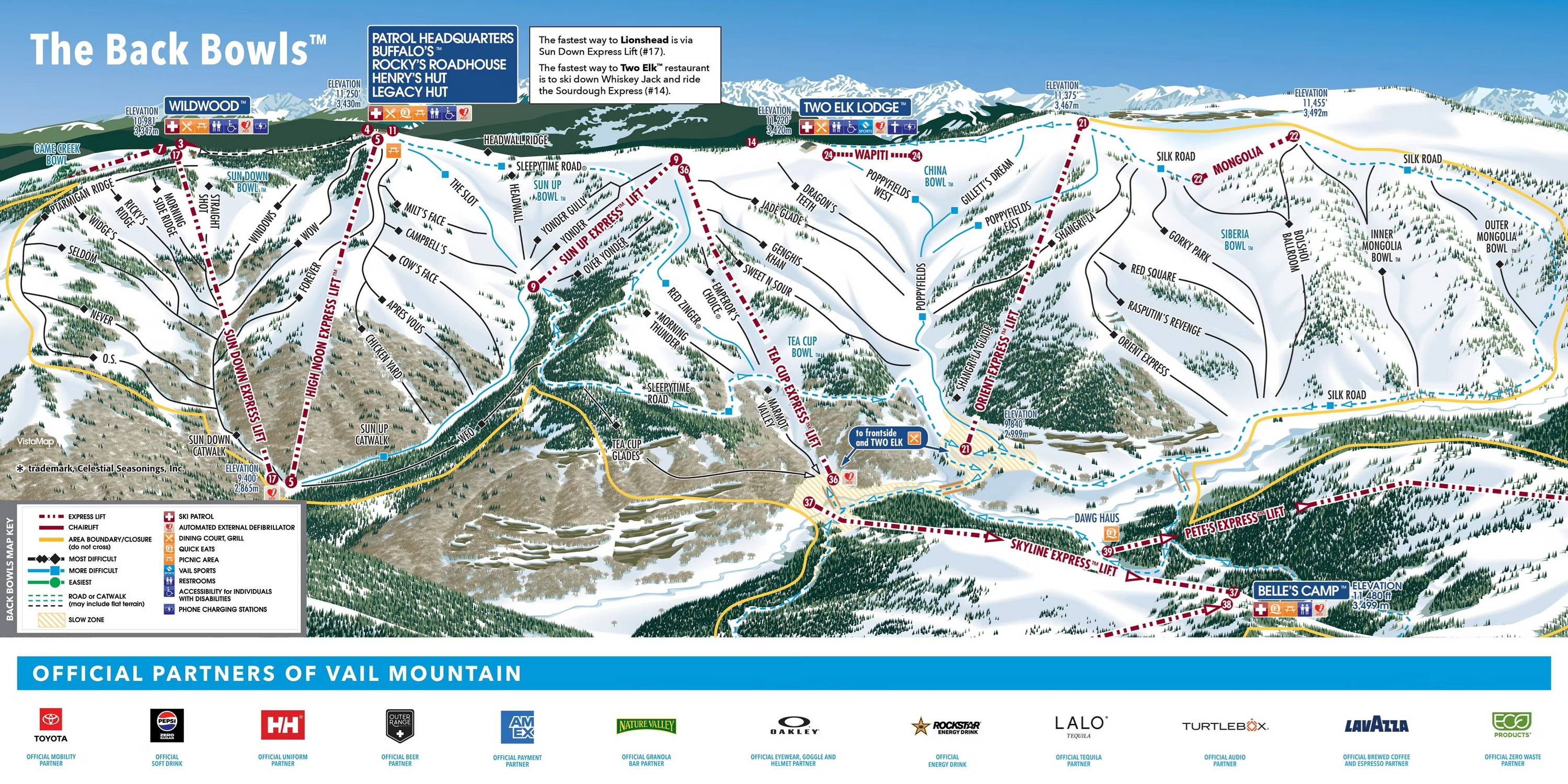 Pistenplan Vail Back Bowls Saison 2025/2026