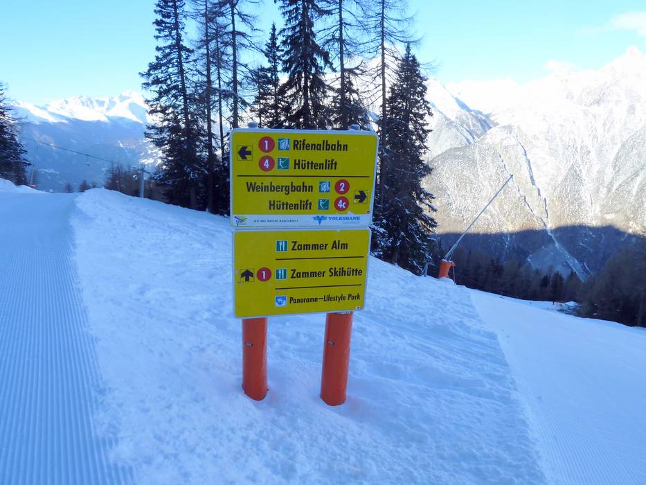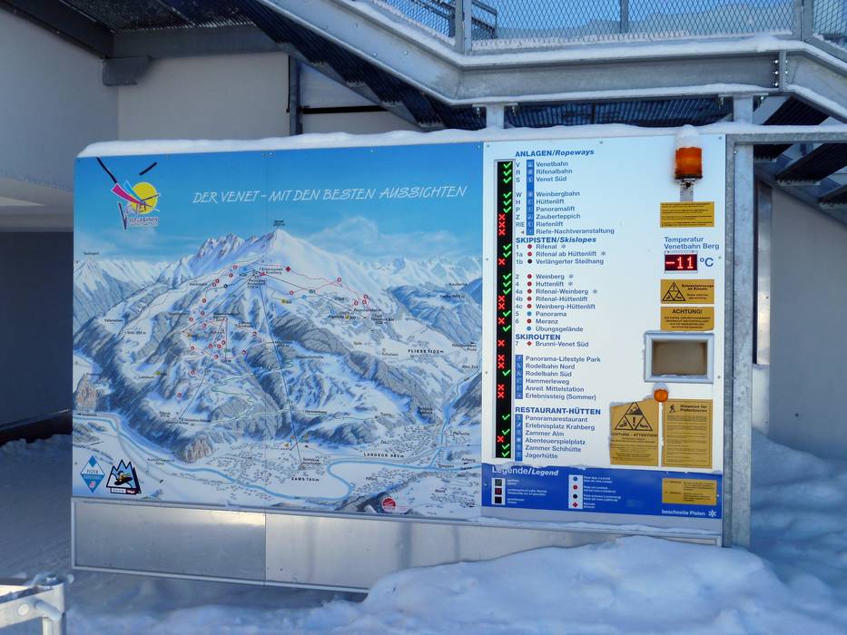 Orientierung (Pistenplan, Informationstafeln, Ausschilderung) und Sicherheit im Skigebiet Venet – Landeck/Zams/Fliess