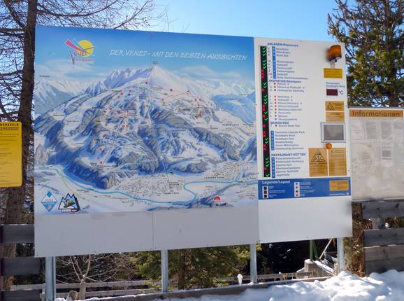 An den Stationen der Venetbahn befinden sich moderne Tafeln mit aktuellem Pistenstatus. Weitere große Übersichtspläne befinden sich an den Talstationen der Sesselbahnen. Die Pisten sind mit Schildern ausgezeichnet und man findet sich gut im Skigebiet zurecht.