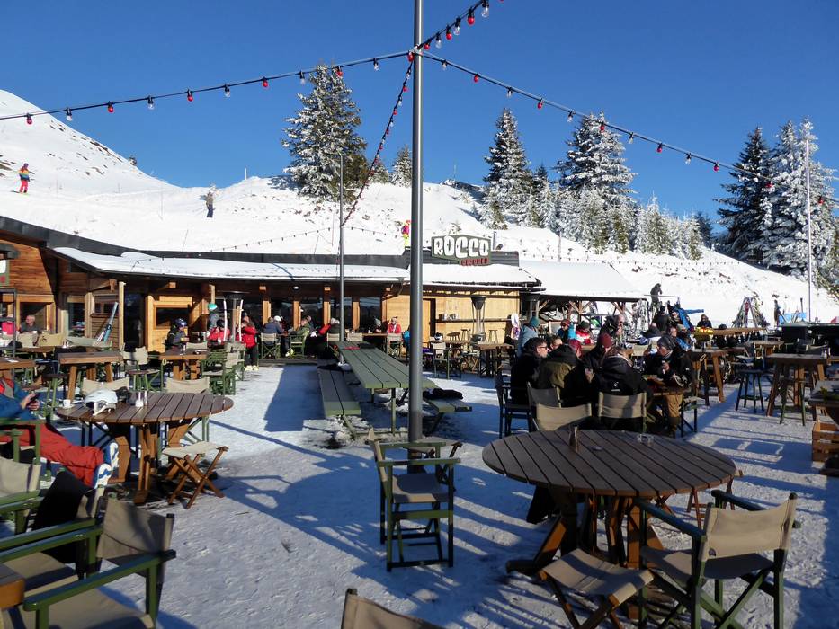 Das Restaurant Rocco Cantina Italiana bietet die höchstgelegene Terrasse von Villars-sur-Ollon mit Blick auf den Mont-Blanc. Steaks, Röstis, Fondues und Pizzen stehen auf der Speisekarte und eine gute Getränkekarte rundet das Angebot ab.