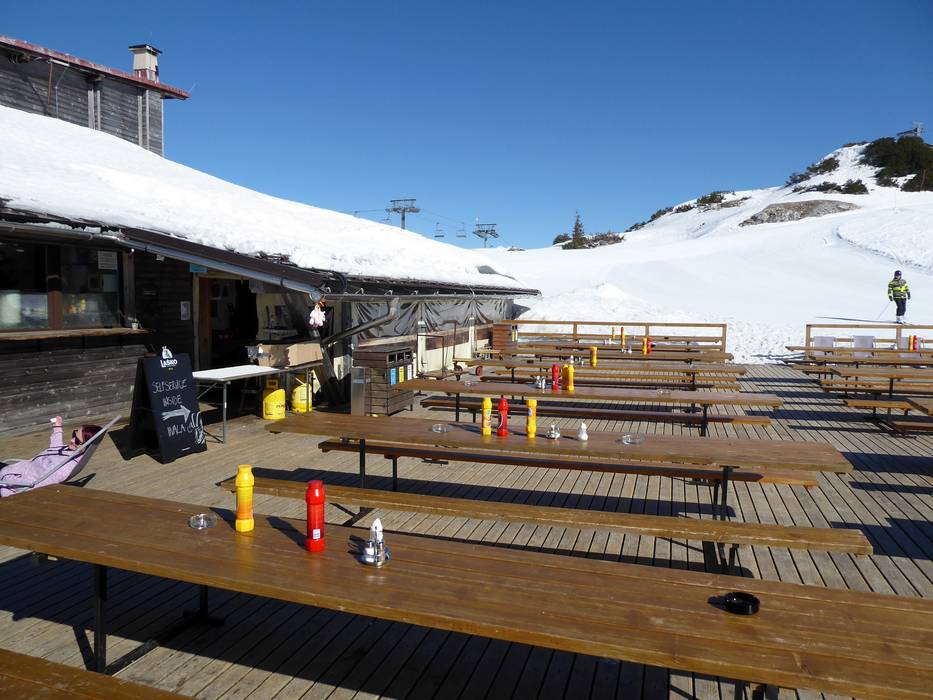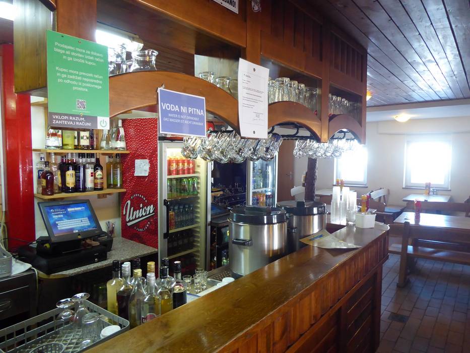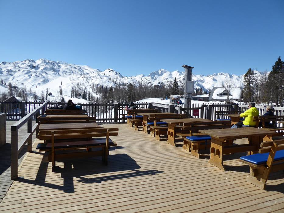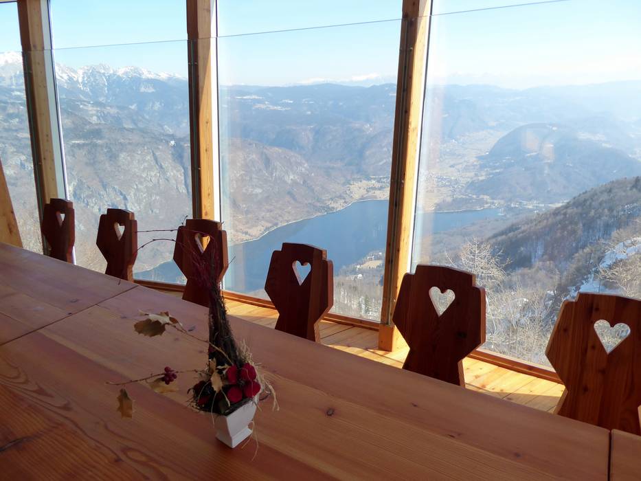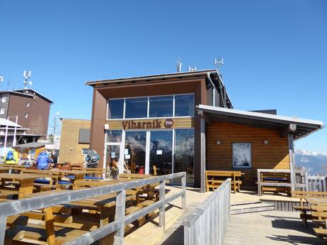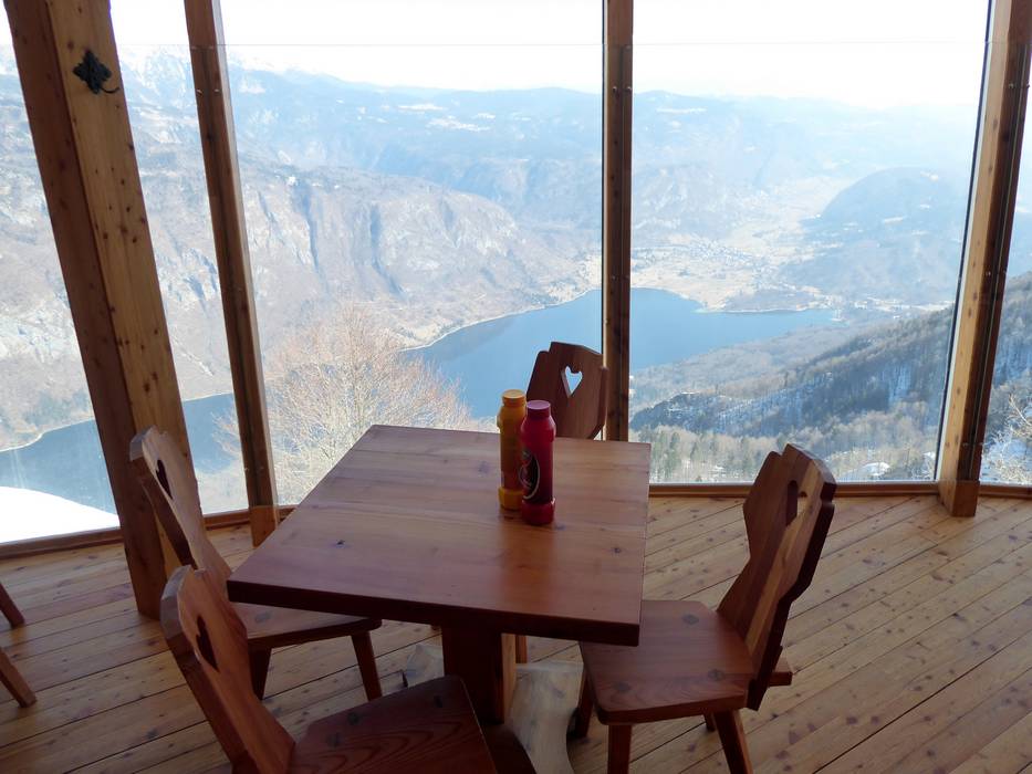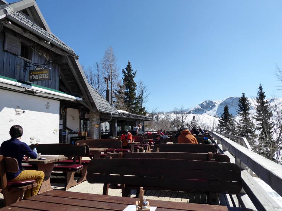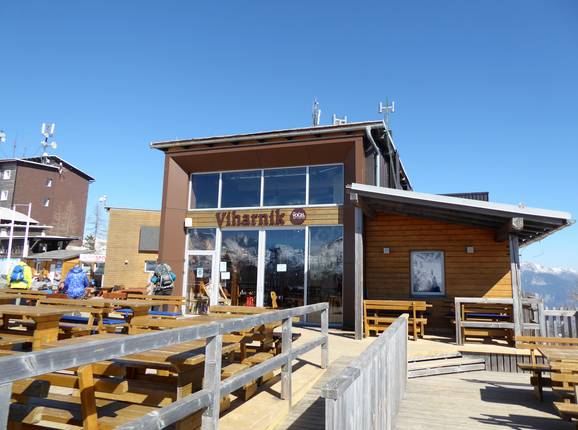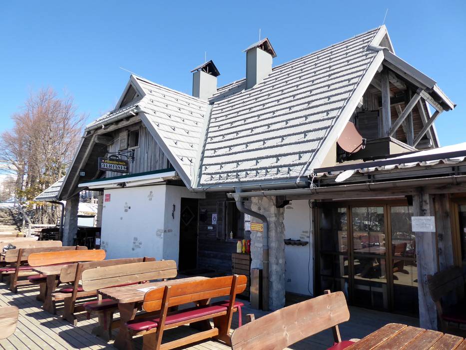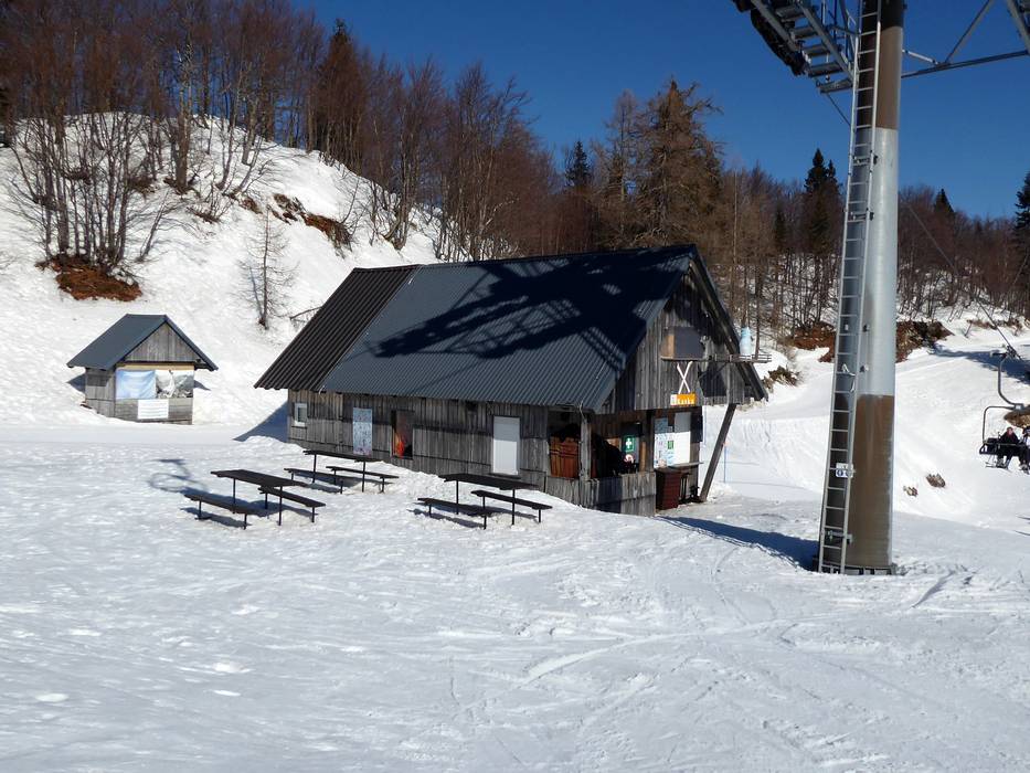 Die höchste Hütte im Skigebiet von Vogel bietet eine große Sonnenterrasse und urige Stuben. Es werden typische Slowenische Gerichte angeboten.
