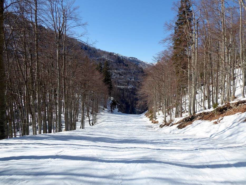 Die Talabfahrt führt bis zur Talstation der Seilbahn und es ist die längste Piste in Slowenien.
