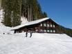 Diese urige Hütte, auf 1380 m Höhe gelegen, ist immer ein Erlebnis für einen Einkehrschwung bei der Talabfahrt.