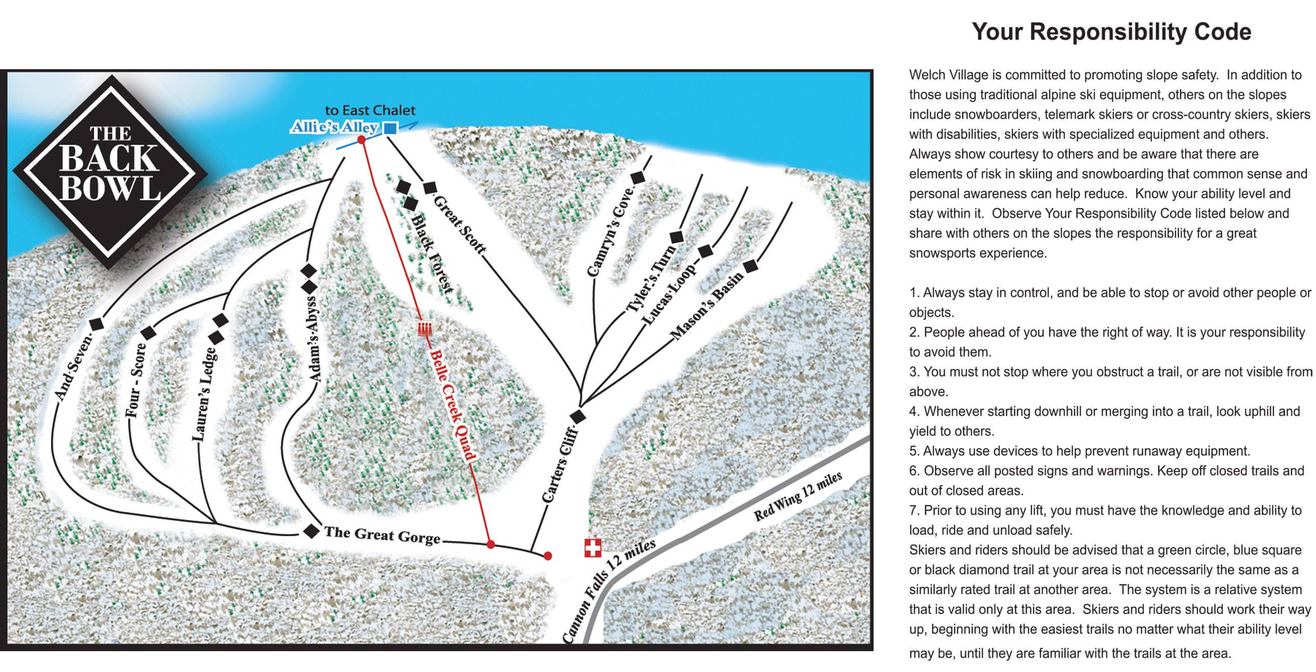 Pistenplan Welch Village Backbowl Saison 2025/2026