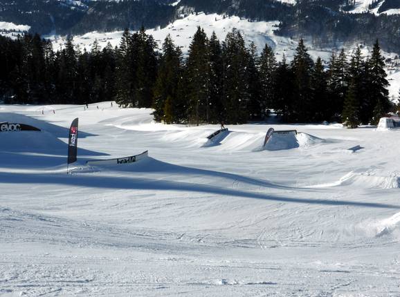Der große Funpark ist für Anfänger und Profis gleichermaßen geeignet. Es gibt unterschiedliche Lines mit Kickern und vielen Obstacles. Der Snowpark befindet sich zwischen Freienalp und Oberdorf und hat auch eine große Chillarea mit Bar, Sound und Liegestühlen.