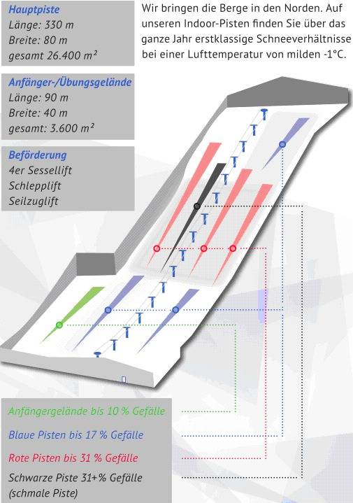 Es gibt einen schemenhafen Pistenplan mit allen Informationen rund um das alpincenter Hamburg-Wittenburg. Zudem findet man alle Informationen in einer schönen Broschüre zusammengefasst.