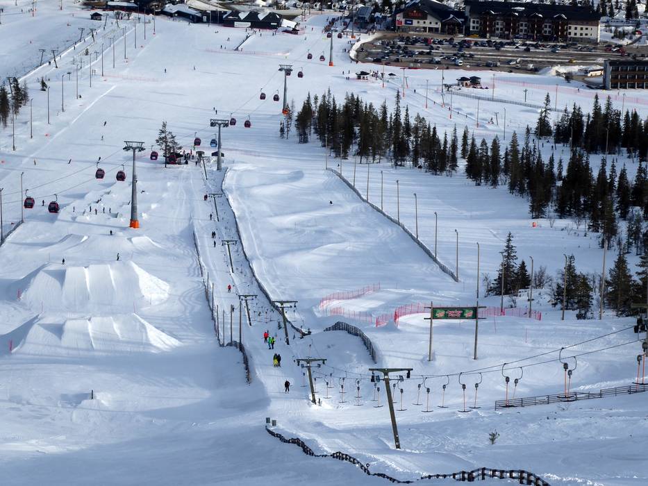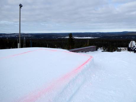 Im Skigebiet Ylläs warten mehrere Snowparks auf beiden Seiten des Gipfels Yllästunturi in den Talbereichen auf Freestyler und Snowboarder.