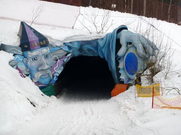 Die Naturrodelbahn beginnt beim Ausstieg der Kabinenbahn und führt über Kurven, Tunnels, vorbei an fantastischen Gestalten, samt Lichteffekten, zurück zur Talstation.