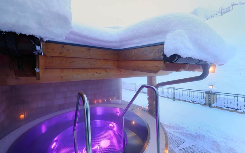 Blicken Sie von der Mühlensauna und dem Whirlpool im Freien direkt auf die Berge. Unser 1000 m² großer Wellnessbereich bietet viel Platz, um nach einem aktiven Bergtag zu entspannen und sich rundum wohl zu fühlen.
