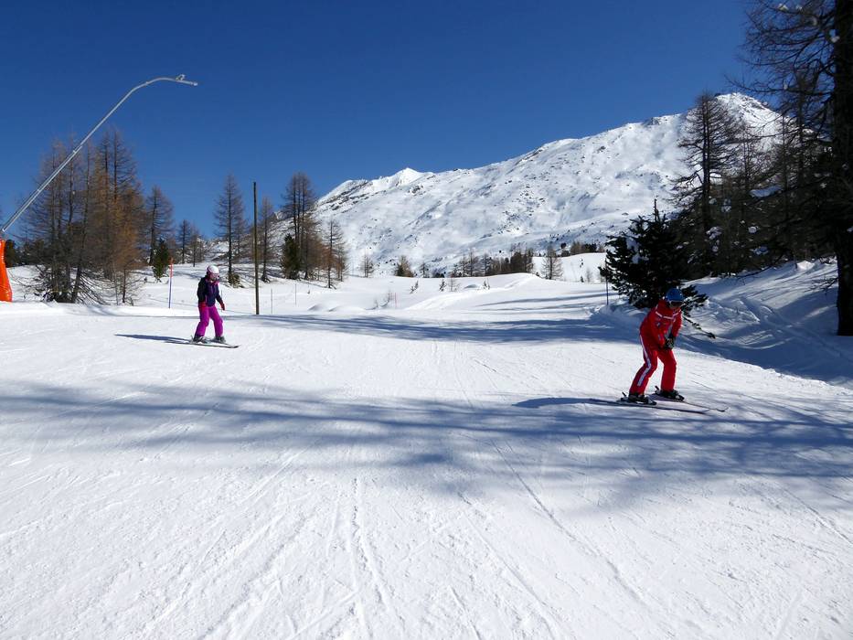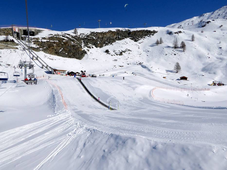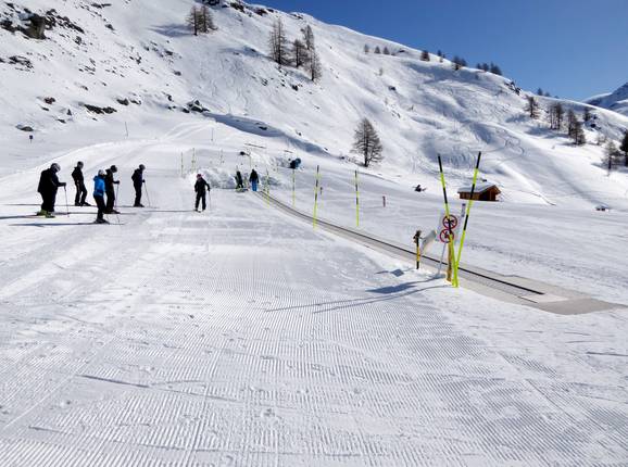 Valtournenche bietet auch einiges für Anfänger. In Salette an der Bergstation der Gondelbahn gibt es mehrere Förderbänder sowie leichte Pisten an der Sesselbahn Motta. Die Talabfahrt ist jedoch mittelschwer.
