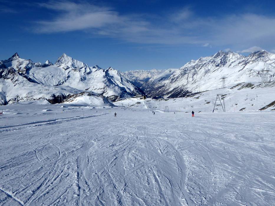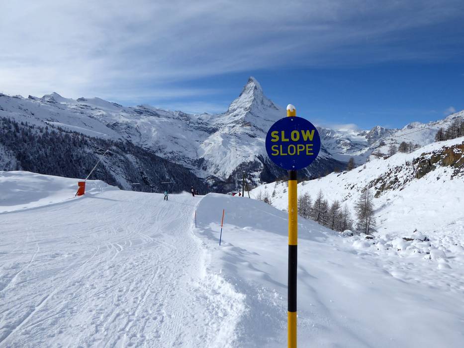In Zermatt können Anfänger viele Punkte im Skigebiet auf leichten Pisten erkunden. Das komplette Skigebiet kann aber leider nicht auf leichten Pisten befahren werden. An einigen Stationen gibt es einzelne Anfängerparks und Slow Slopes. Der Wolli Anfängerpark Sunnegga ist ideal für die ersten Schwünge. Hier gibt es mehrere Förderbänder und wer dann sicher auf Ski steht, kann die Slow Slope nach Eja oder die Slow Slope Standard befahren. Am Gornergrat gibt es einige leichte und breite Pisten, Slow Slope sowie den großen Anfängerpark am Riffelberg. Im Anfängerpark gibt es mehrere Förderbänder und Seillifte. Einen weiteren Anfängerpark mit Übungslift gibt es am Trockenen Steg. Hier können die Anfänger auch eine sehr leichte und breite Gletscherpiste erkunden. Eine leichte Talabfahrt nach Zermatt gibt es nicht und so müssen die Anfänger immer wieder mit Bahnen zu Tale fahren.