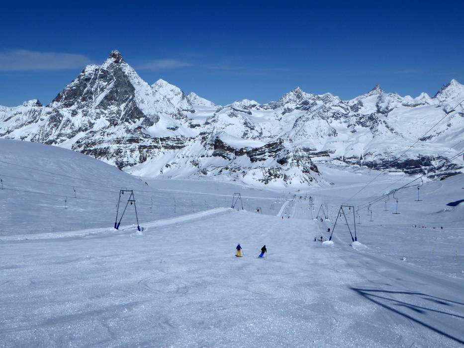 In Zermatt und Breuil-Cervinia kann man am Matterhorn glacier paradise das ganze Jahr über dem Wintersport nachgehen. Der Theodulgletscher ist das größte und höchste Gletscherskigebiet der Alpen. Er ist ganzjährig von Zermatt aus zu erreichen und bietet an 365 Tagen im Jahr Wintersportmöglichkeiten. Von Breuil-Cervinia erreicht man, mit Ausnahme der Zwischensaison im Frühling, das Gletscherskigebiet ebenfalls ganzjährig. Zusätzlich gibt es in Zermatt am Trockenen Steg eine Top-Beschneiung mit dem IDE Snowmaker aus Israel.